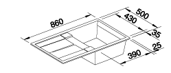 Decription: With 3½" pop up waste and overflow. This sink has a Universal Bowl Position.Bowl depth: 190mm Cabinet width minimum: 50cm Cut out size: 840 x 480 x R15 Sink Pack Price Includes BlancoCleo Tap