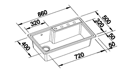 Decription: With 3½" basket strainer waste and overflow Bowl depth: 210mm Cabinet width minimum: 90cm Cut out size: 840 x 480 x 15R Sink Pack Price Includes BlancoCleo Tap